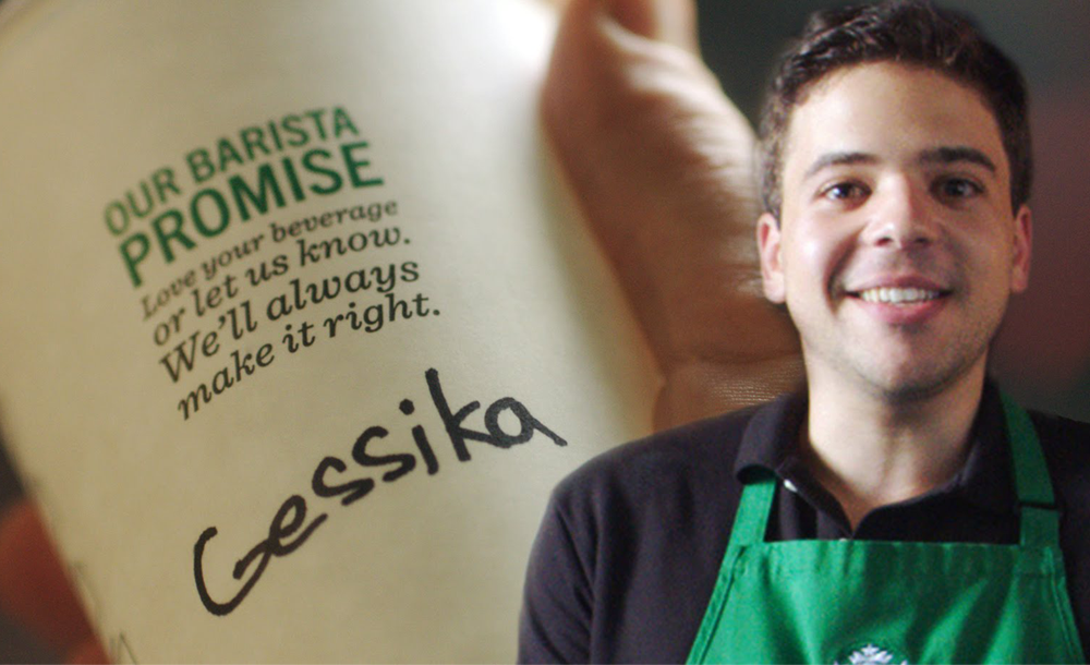 在星巴克买咖啡的时候,店员总会在杯子上写上你的名字。这么做想来是为了防止拿错杯子,还挺贴心的。但是,往往你拿到杯子的时候就会发现名字写错了。 其实是Cessike,而不是Cessika.而且无论你在哪,错的概率都是一样的! 为什么每次都写错? 难道他们都没文化吗? 直到在Youtube上看到了由JohnPurcell 和 Paul Gale制作的一个视频。 视频中,上面这个小伙子很淡定地说,其实我们不是没文化。每个人都知道Jessica怎么拼。